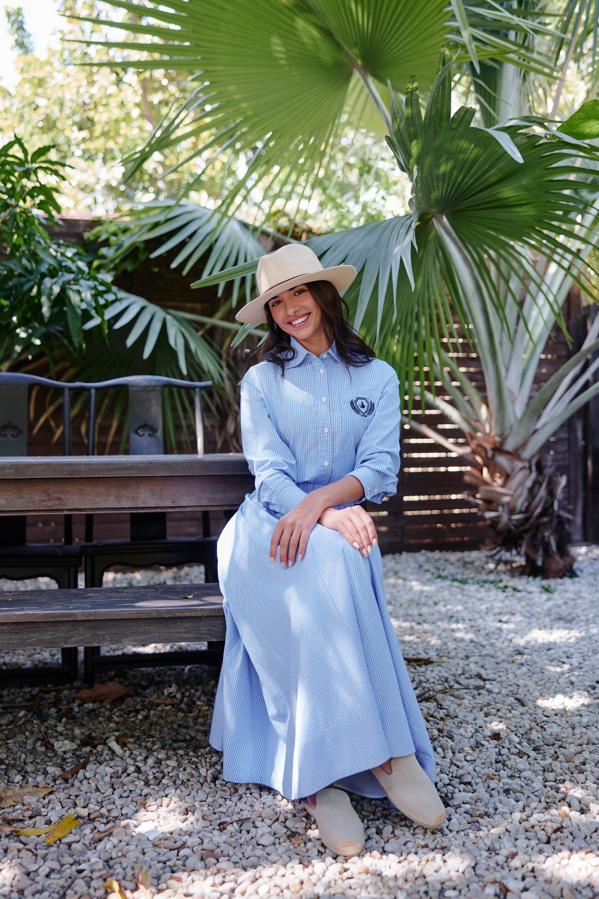 The Icon Poplin Set is a beautiful striped ensemble that perfectly balances style and ease. Featuring a collared button-down top and a matching skirt with an elastic waistband, it’s comfortable, versatile, and effortless to wear. Perfect for spring and summer, this classy set is ideal for brunch, outings, or any day you want to look put-together in an instant.