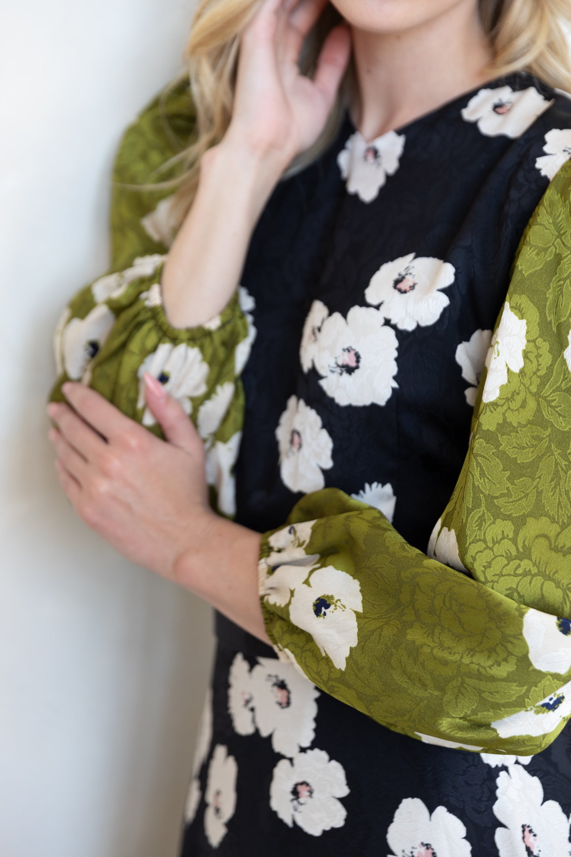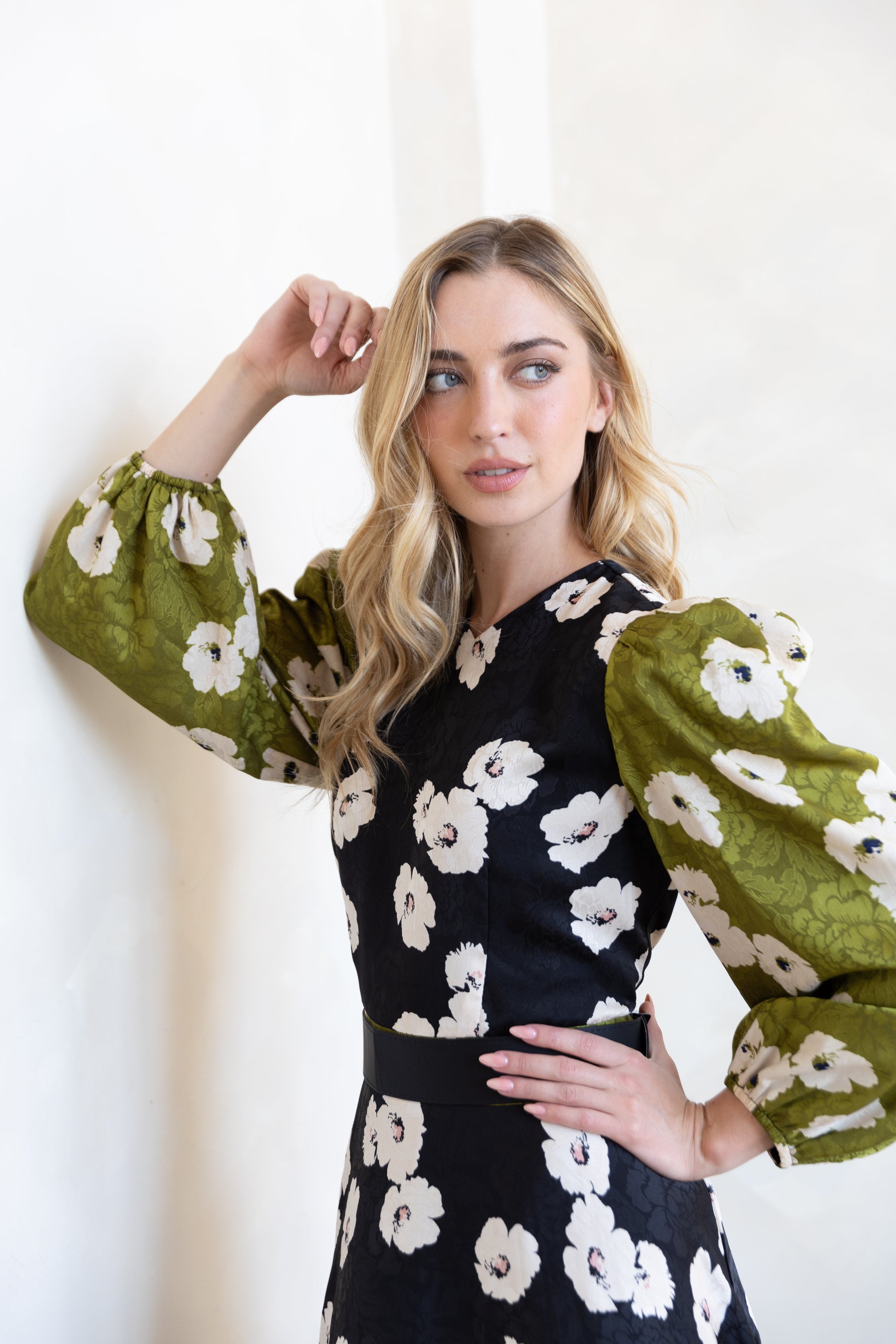 The Monaco Dress is an eye-catching, elegant satin piece perfect for evening events. Featuring a bold, vibrant print, it exudes sophistication with a touch of flair. The contrast puffed sleeves add a unique, modern twist to this classic silhouette, making it a standout choice for any special occasion.